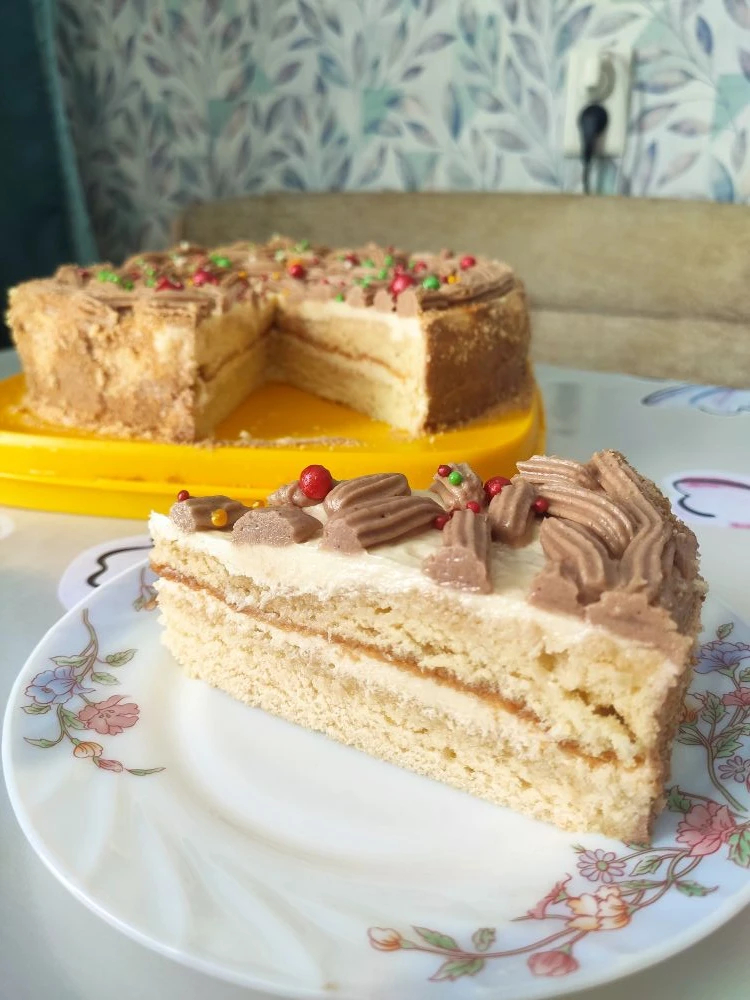 Рецепт из книги Ирины Чадеевой «Выпечка по ГОСТу». Только у меня торт в виде рулета.